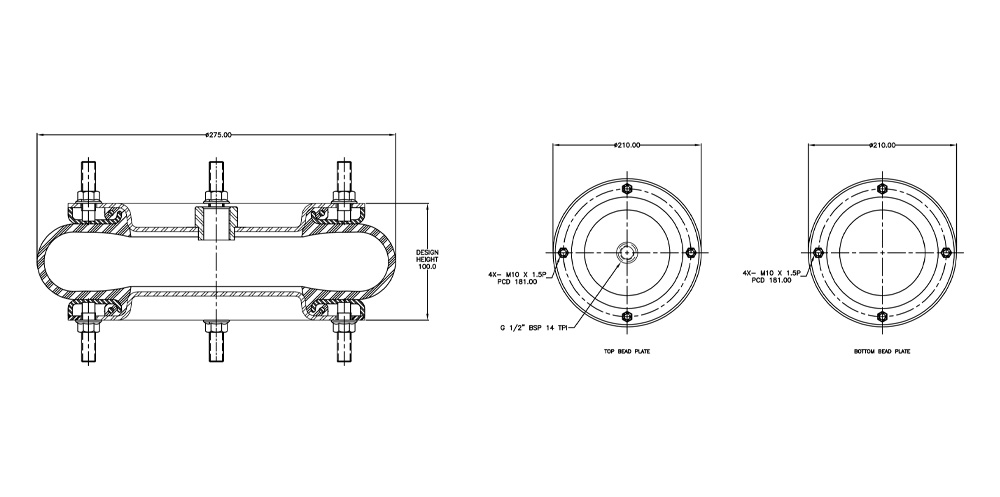 | Load Capacity | 17.0kN @6Bar 100mm Height |