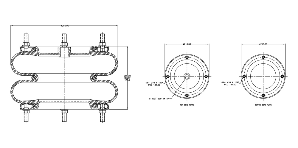 | Load Capacity | 16kN @6Bar 175mm Height |