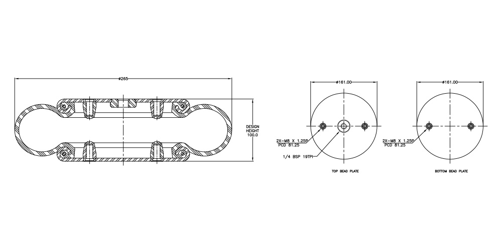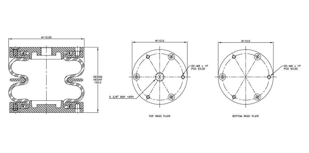 | Load Capacity | 23.4kN @6Bar 100mm Height |